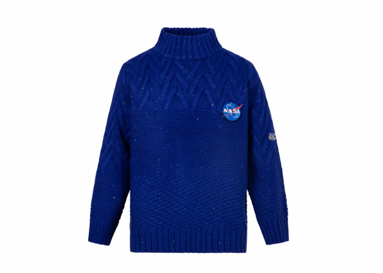 13De Marzo Azure Space Astronaut Teddy Bear Knit Sweater Blue