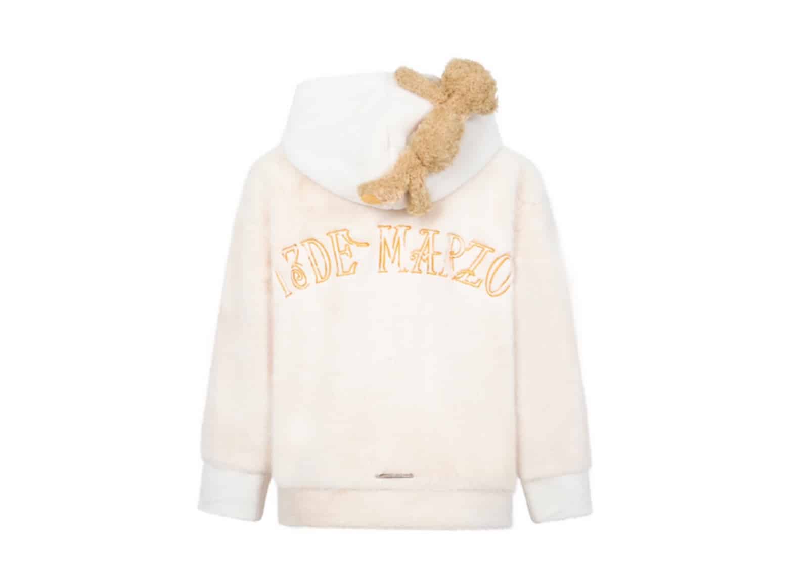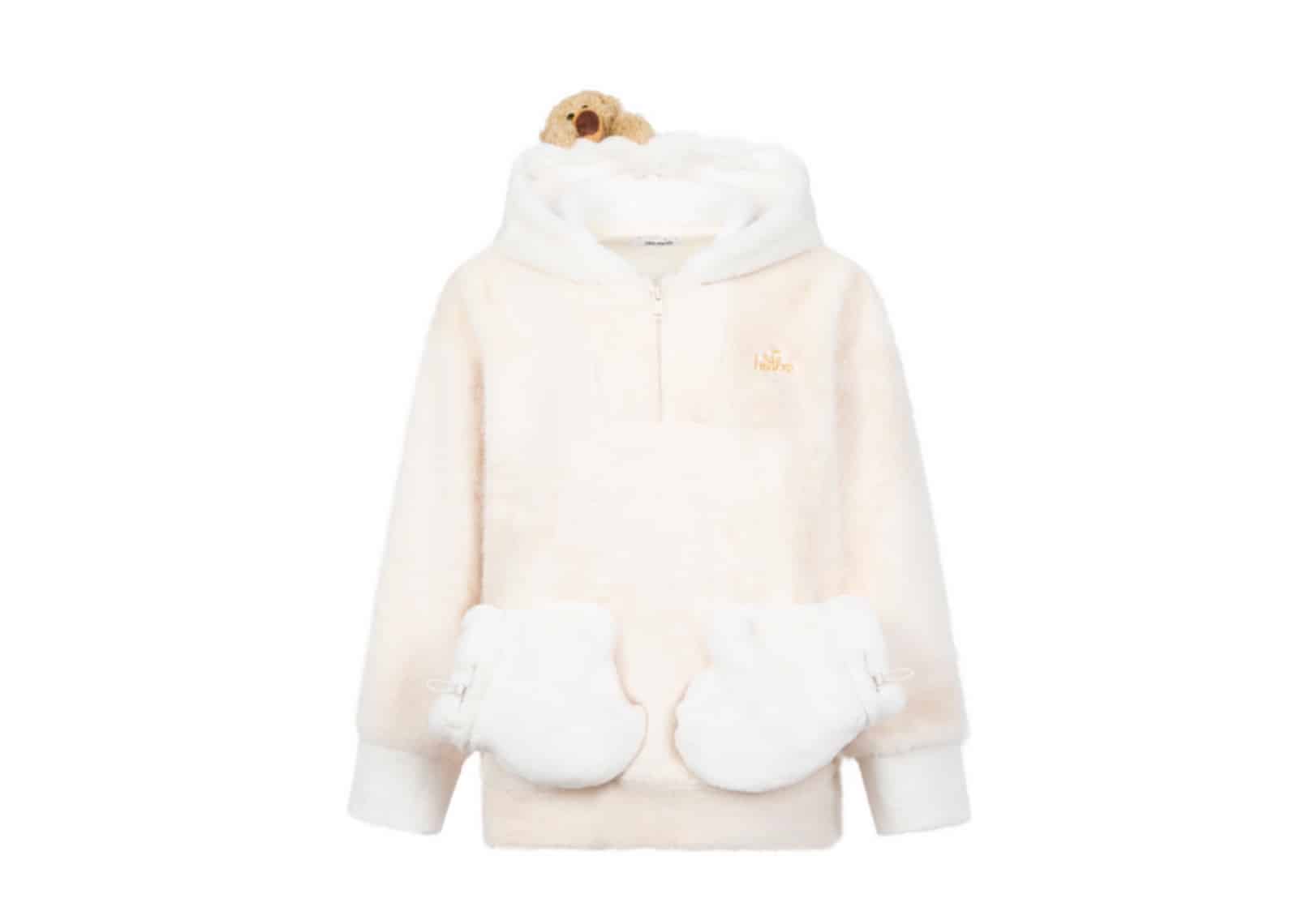 13De Marzo Bear Detachable Velour Pocket Hoodie Cream