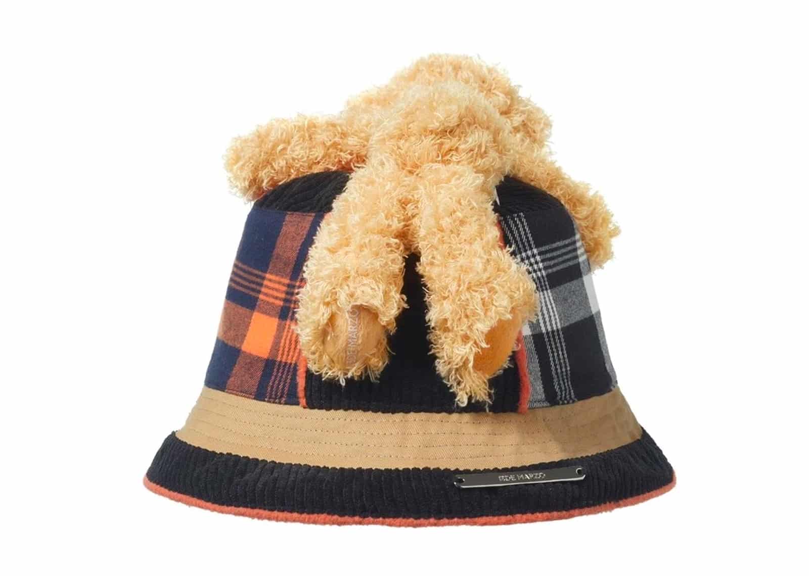 13De Marzo Bear Inside-out Plaid Bucket Hat Khaki