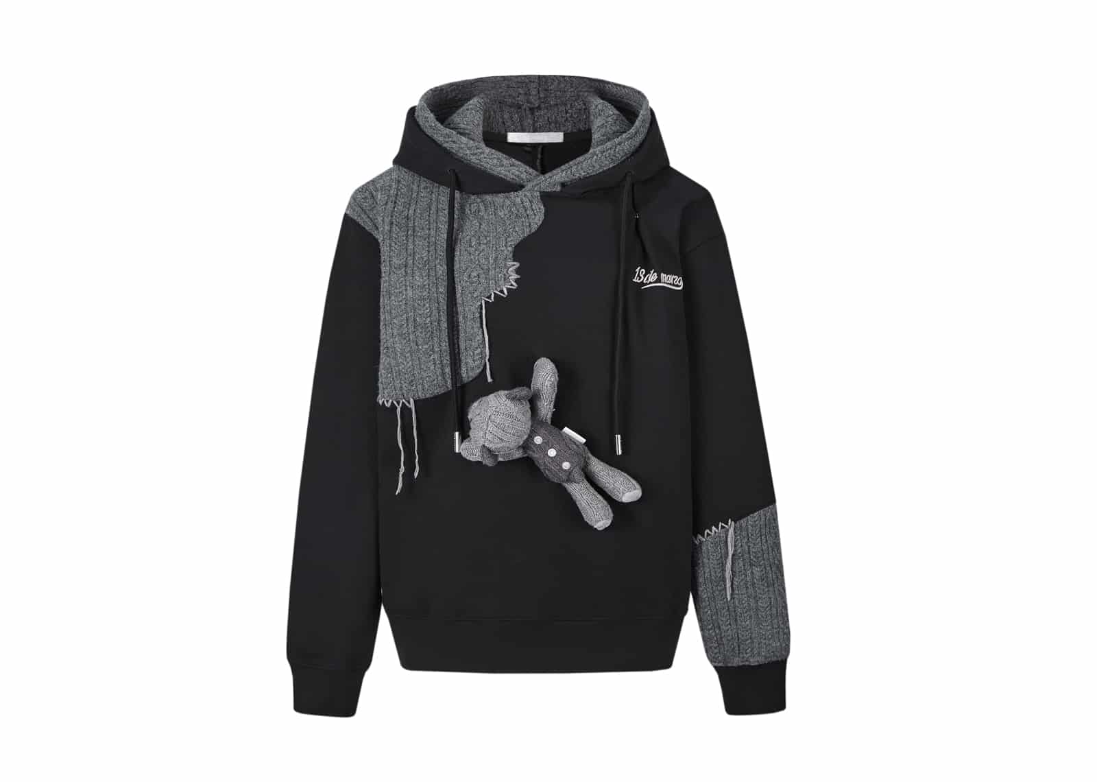 13De Marzo Bear Knit Suture Layered Hoodie Black