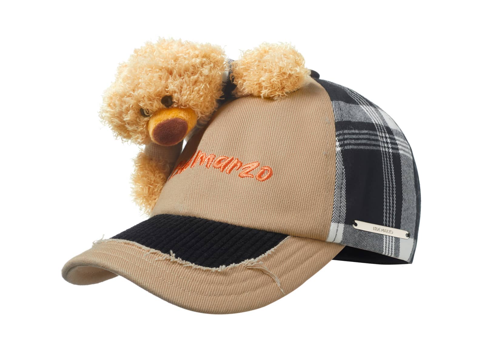 13De Marzo Bear Plaid Match Cap Khaki