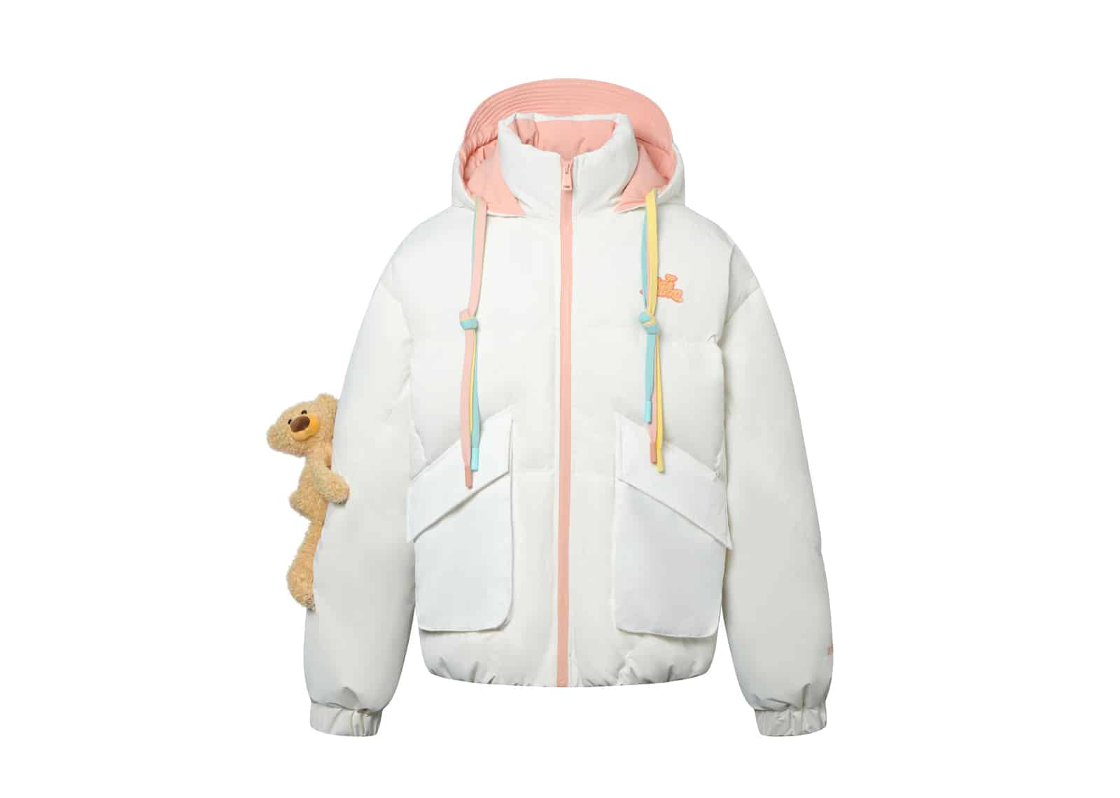 13De Marzo Colored Ribbon Subtitled Down Jacket White