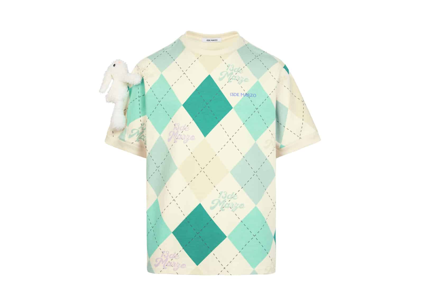 13De Marzo Rabbit Vintage Diamond Pattern Tee Cream