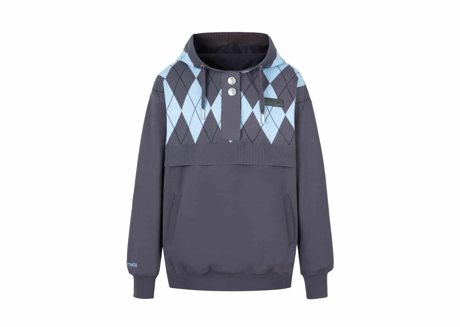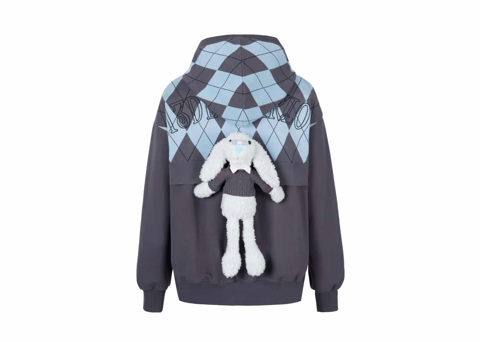 13De Marzo Retro Pattern Knit Hoodie Dark Grey