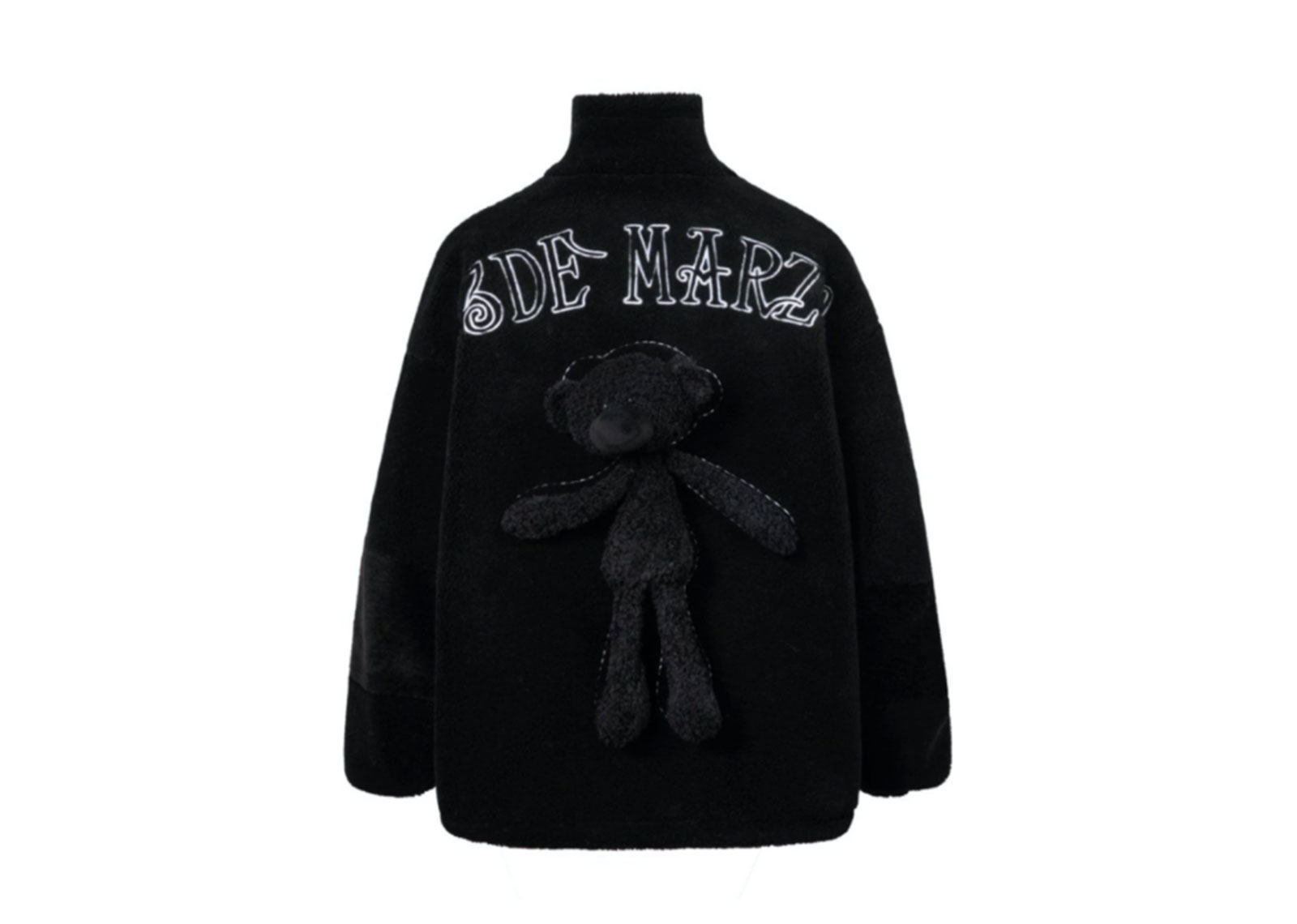 13De Marzo Teddy Bear Lamb Wool Coat Black
