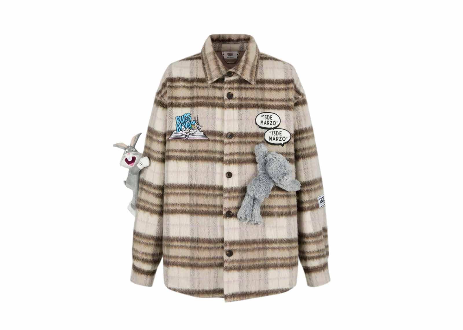 13De Marzo x Looney Tunes Bugs Bunny Plaid Shirt Coat Khaki