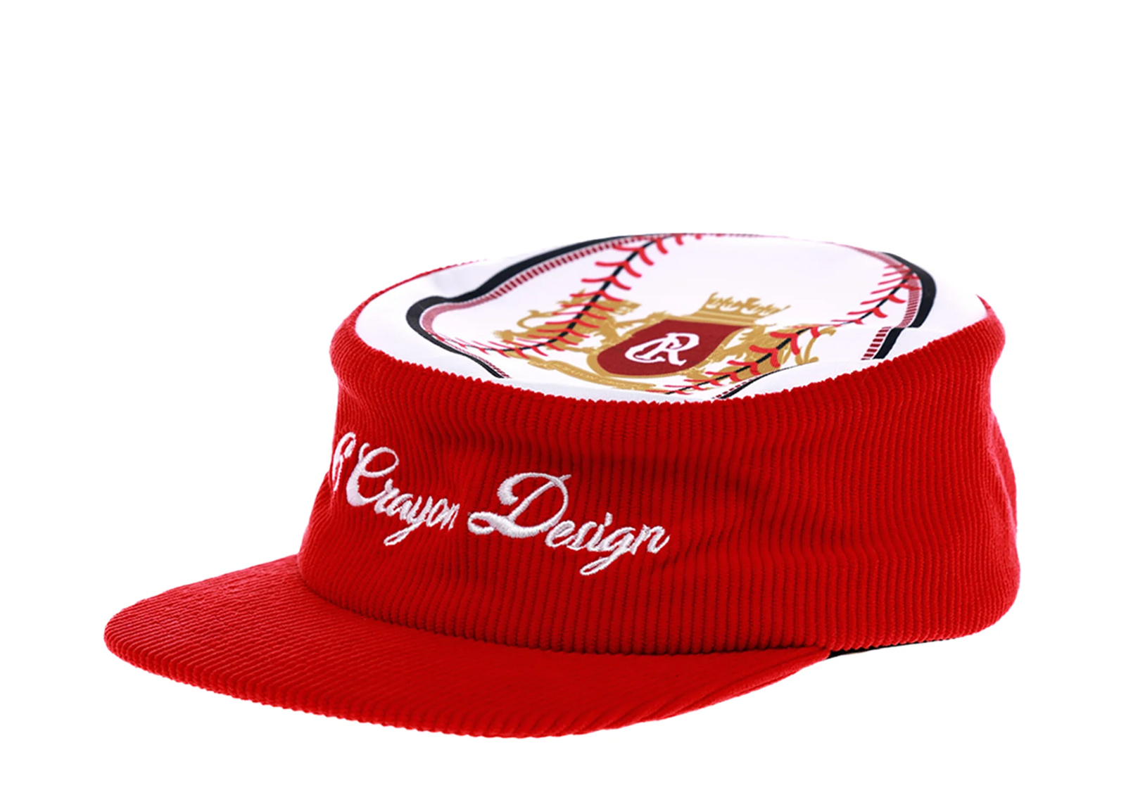 6CRAYON Flat Top Embroidered Corduroy Patchwork Baseball Cap Red