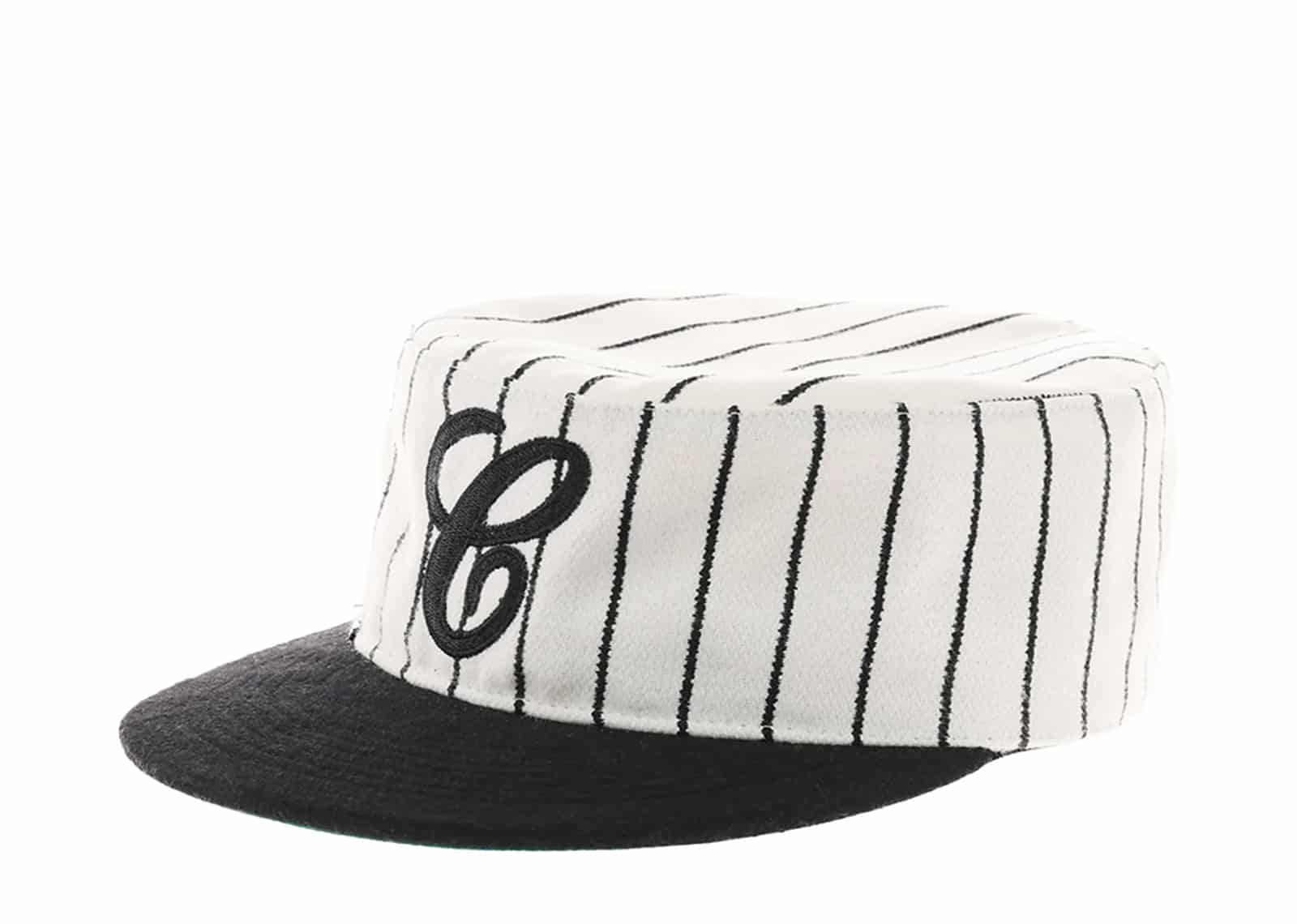 6CRAYON Retro Flat Top Baseball Cap – Striped Wool Blend with Embroidered Letters White Black