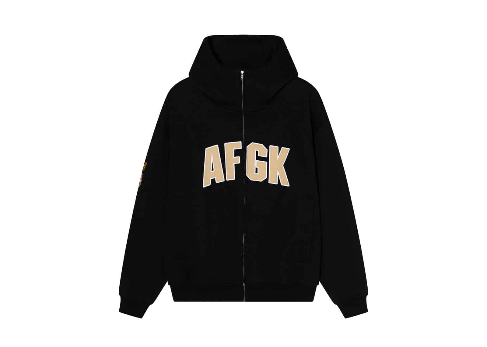 A Few Good Kids Badge Embroidery Stand-up Collar Zip Up Hoodie Black