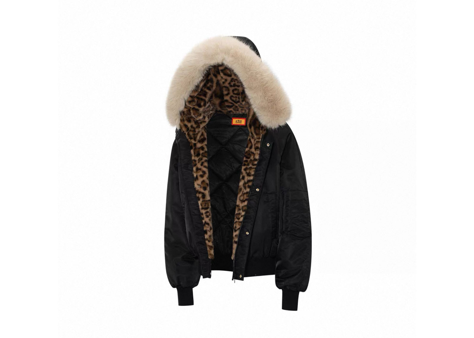 A Few Good Kids Leopard Print Fur Hooded Jacket Black