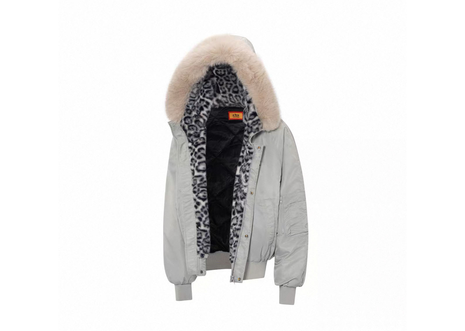 A Few Good Kids Leopard Print Fur Hooded Jacket Grey