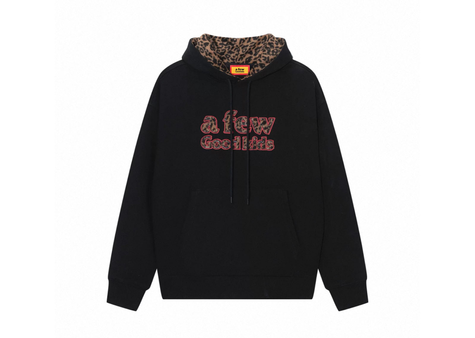 A Few Good Kids Leopard Print Patch Hoodie Black