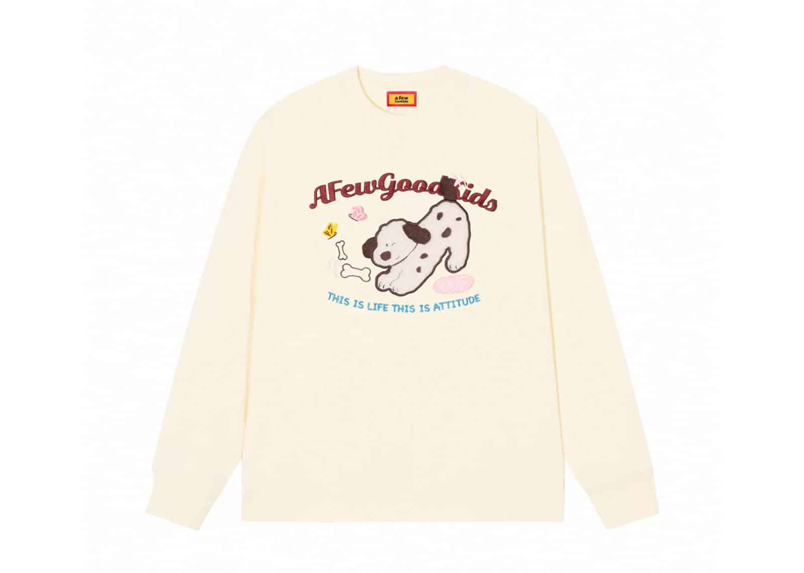 A Few Good Kids Towel Embroidered Puppy L/S Tee Cream