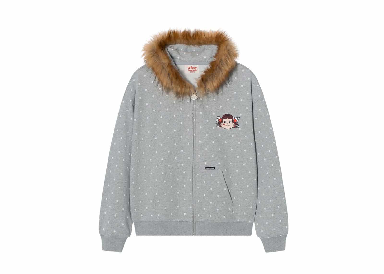 A Few Good Kids x Fujiya Peko Dot Pattern Fur Zip Up Hoodie Grey