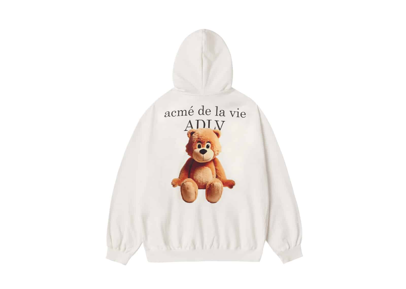 ADLV Ac Bear Basic Logo Zip Up Hoodie White