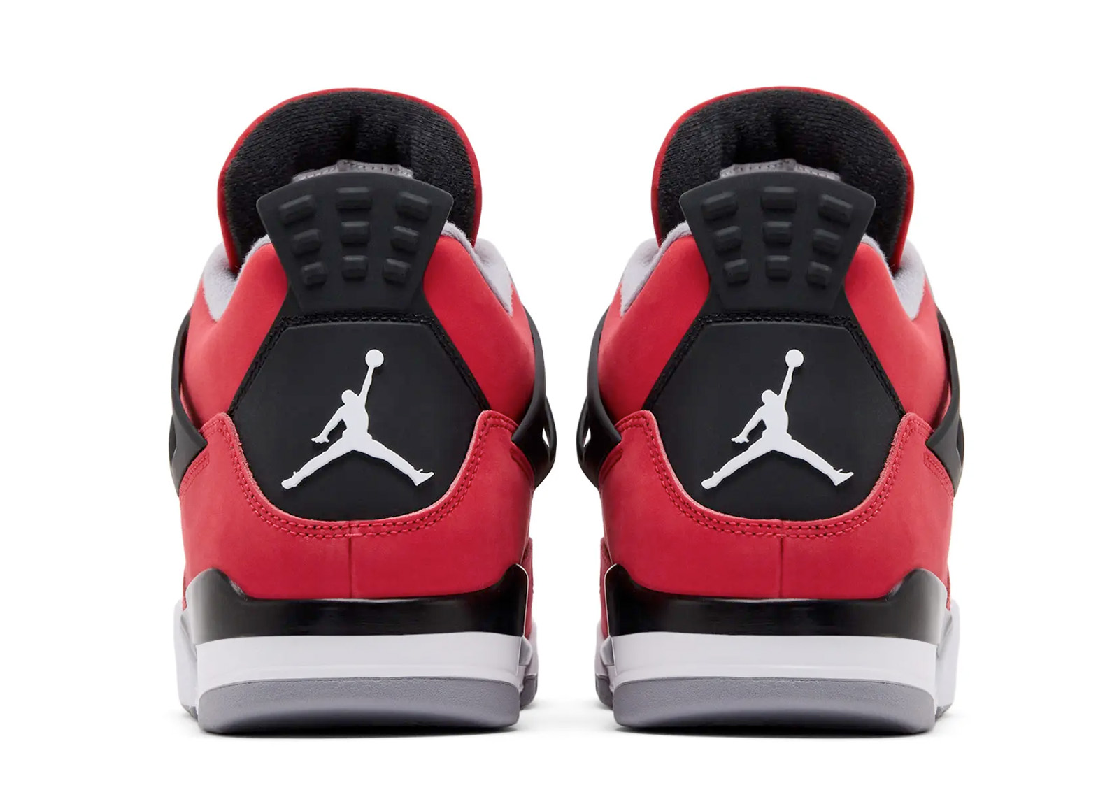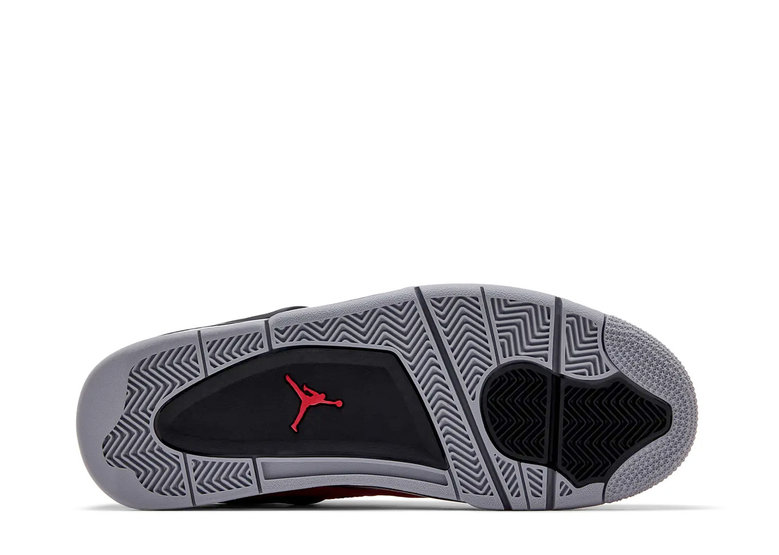 Bold Contrast: Sleek black TPU support wings and a matching Jumpman-branded heel tab frame the black quarter panel underlays, which are covered in the Jordan 4’s signature breathable netting.