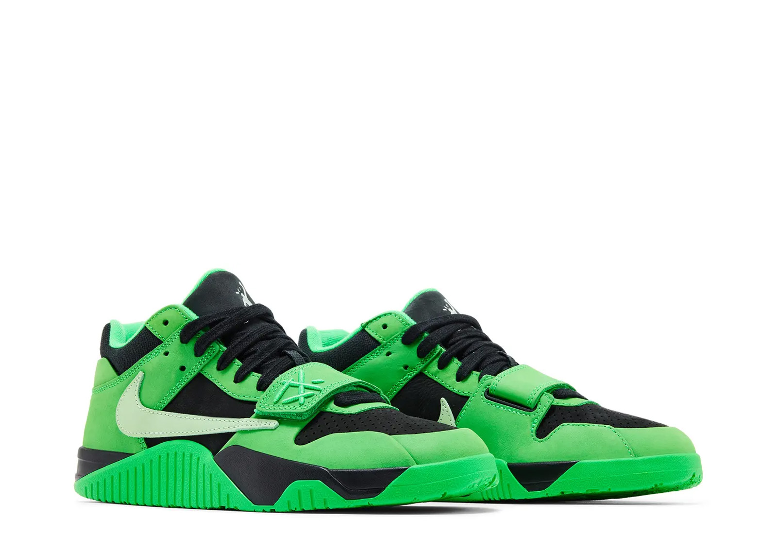 Turn heads and elevate your rotation with the Air Jordan Jumpman Jack TR Travis Scott in ‘Green Spark’. This striking silhouette perfectly merges Jordan’s legendary performance heritage with Travis Scott’s signature, street-driven attitude. Featuring a vibrant Vapor Green and Green Spark upper cut with sharp black detailing, this trainer delivers an aggressive, dynamic presence.