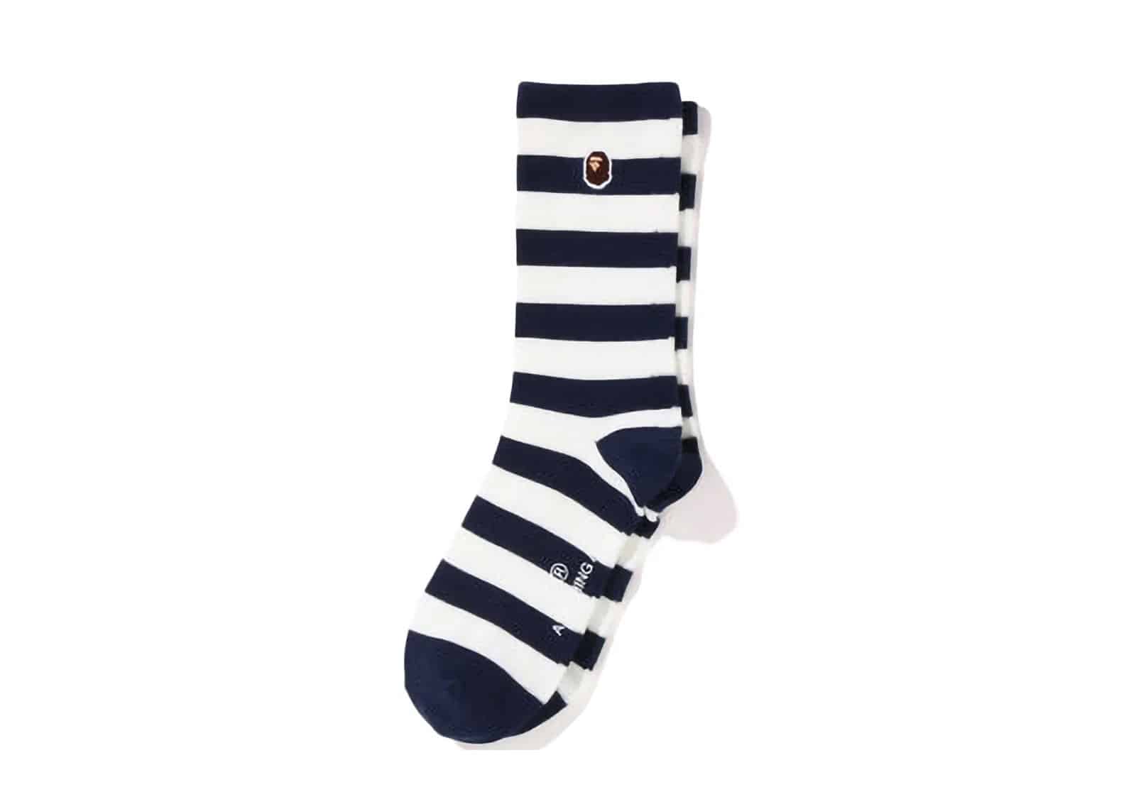 Bape Ape Head One Point Crew Socks Black White Stripe