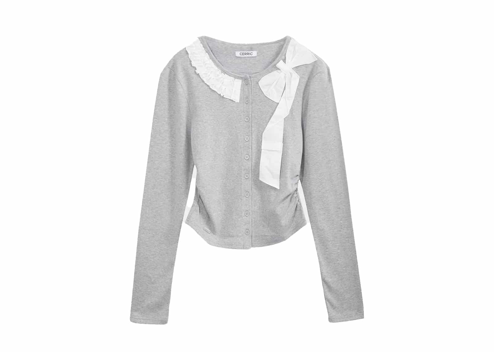 CERRIC 25FW Frill Ribbon Cardigan Gray