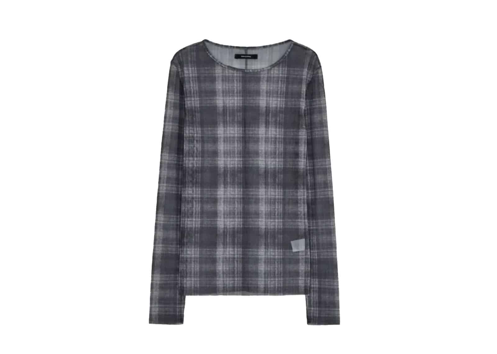 DIAGONAL 25FW Check See Through Long Sleeve Tee Charcoal