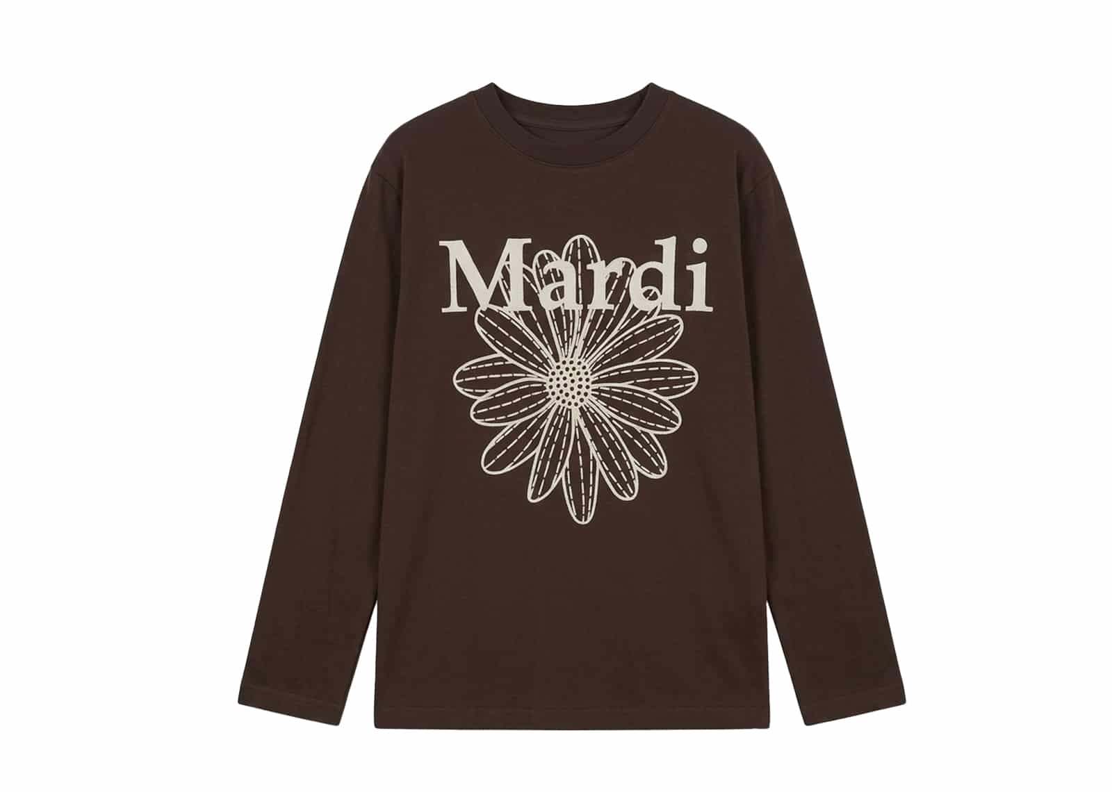 Mardi Mercredi Flowermardi Needlework Long Sleeve Tee Brown Cream