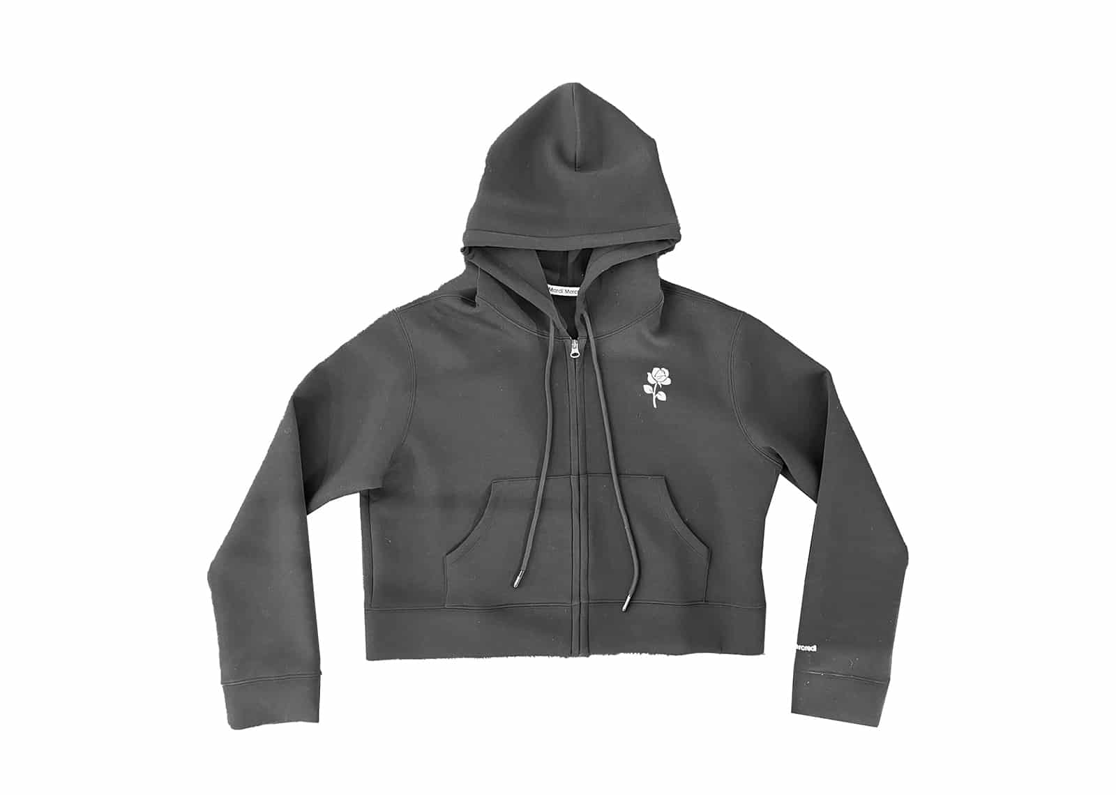 Mardi Mercredi Neoprene Cropped Une Rose Zip Up Hoodie Black Ivory