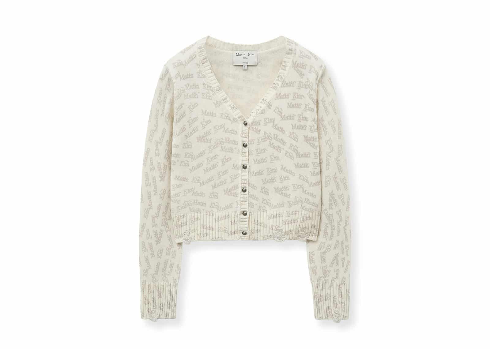 Matin Kim All Over Logo Crop Cardigan Ivory CD022