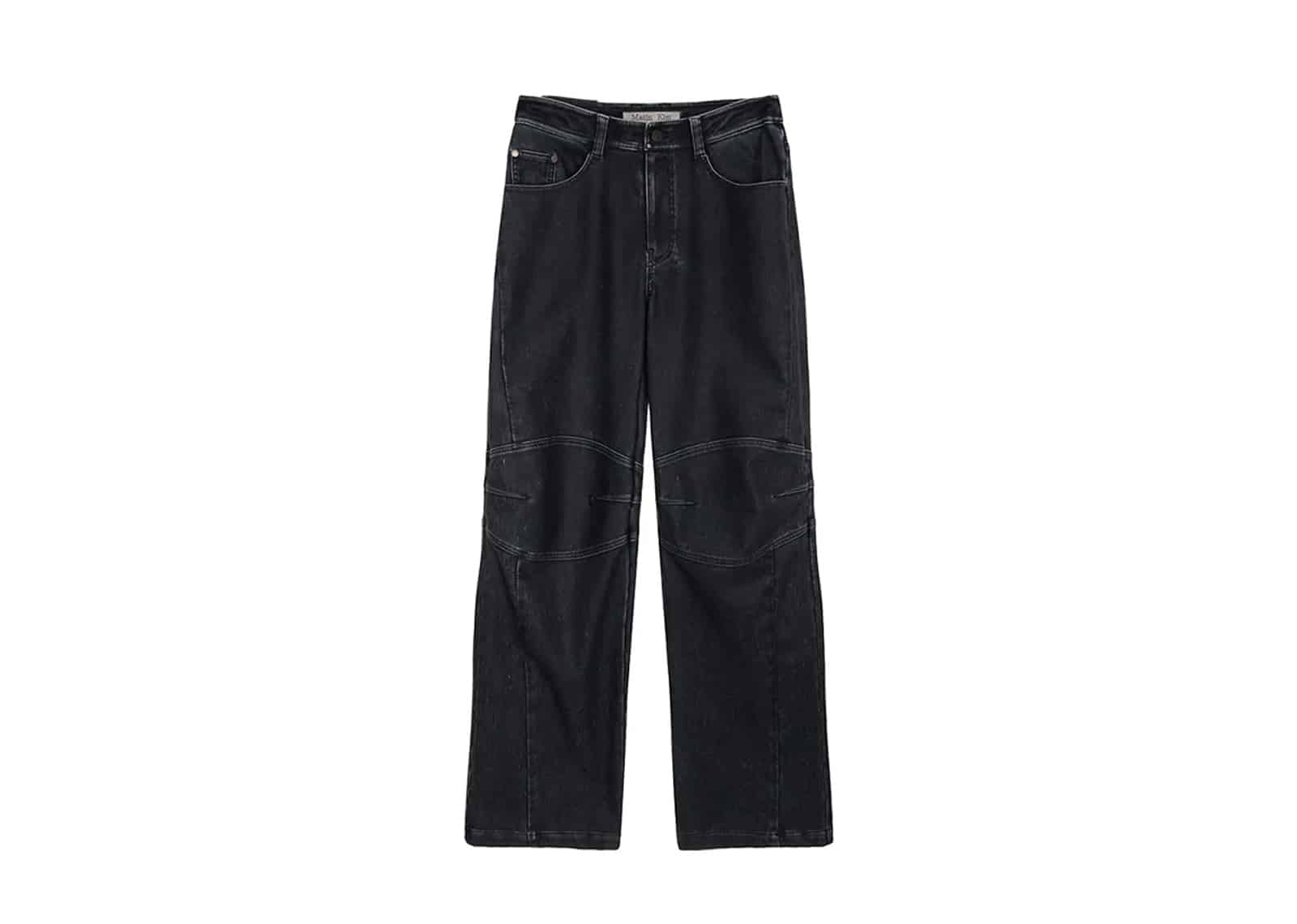 Matin Kim Biker Detail Washed Leather Pants Navy PT059