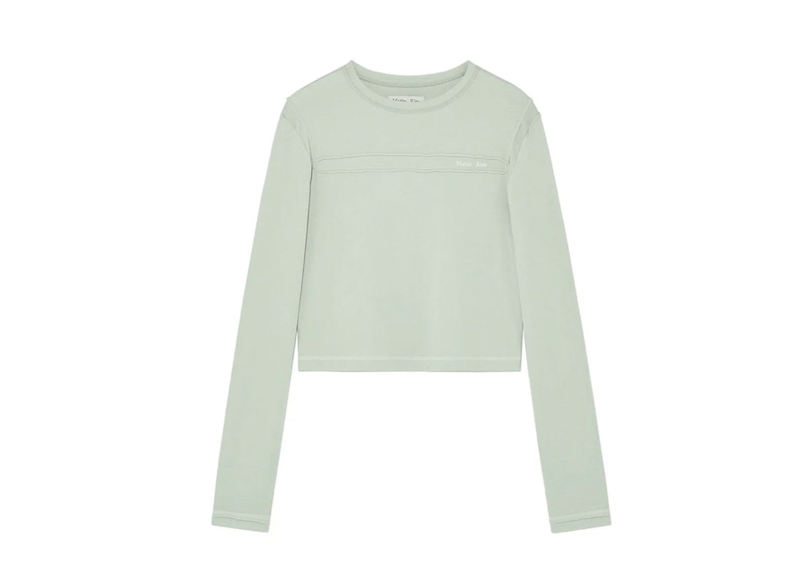 Matin Kim Cut Line Detail Long Sleeve Logo Top Mint TS010