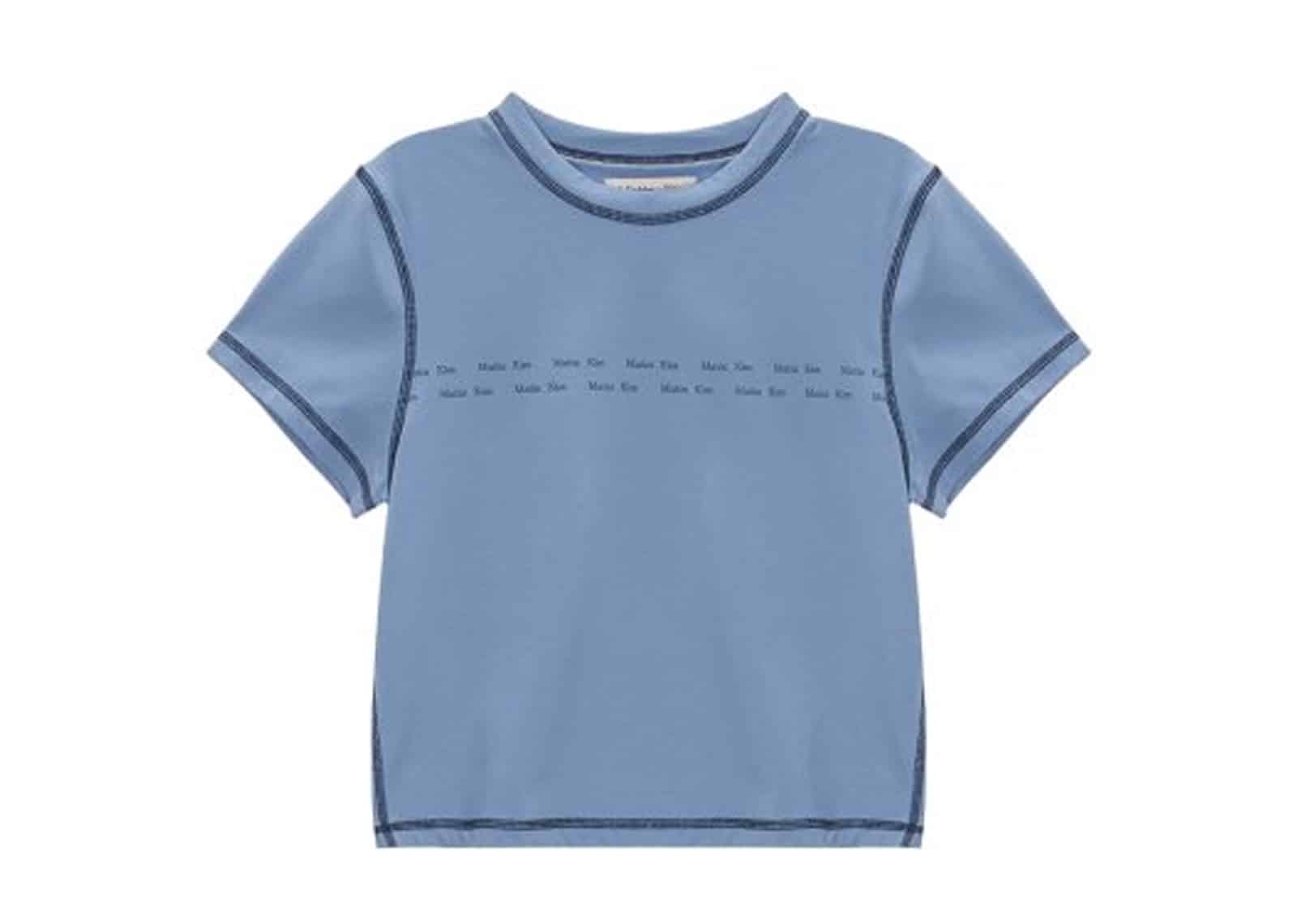 Matin Kim Double Line Logo Stitch Crop Tee Smoke Blue TS054