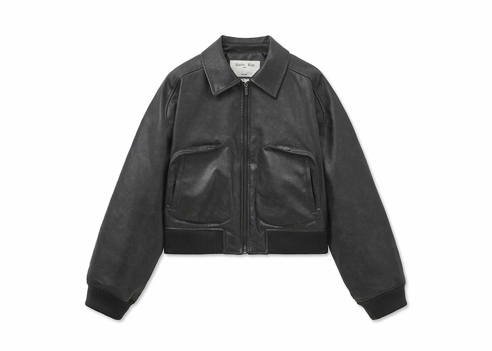 Matin Kim Faux Leather Out Pocket Jumper Charcoal JP049