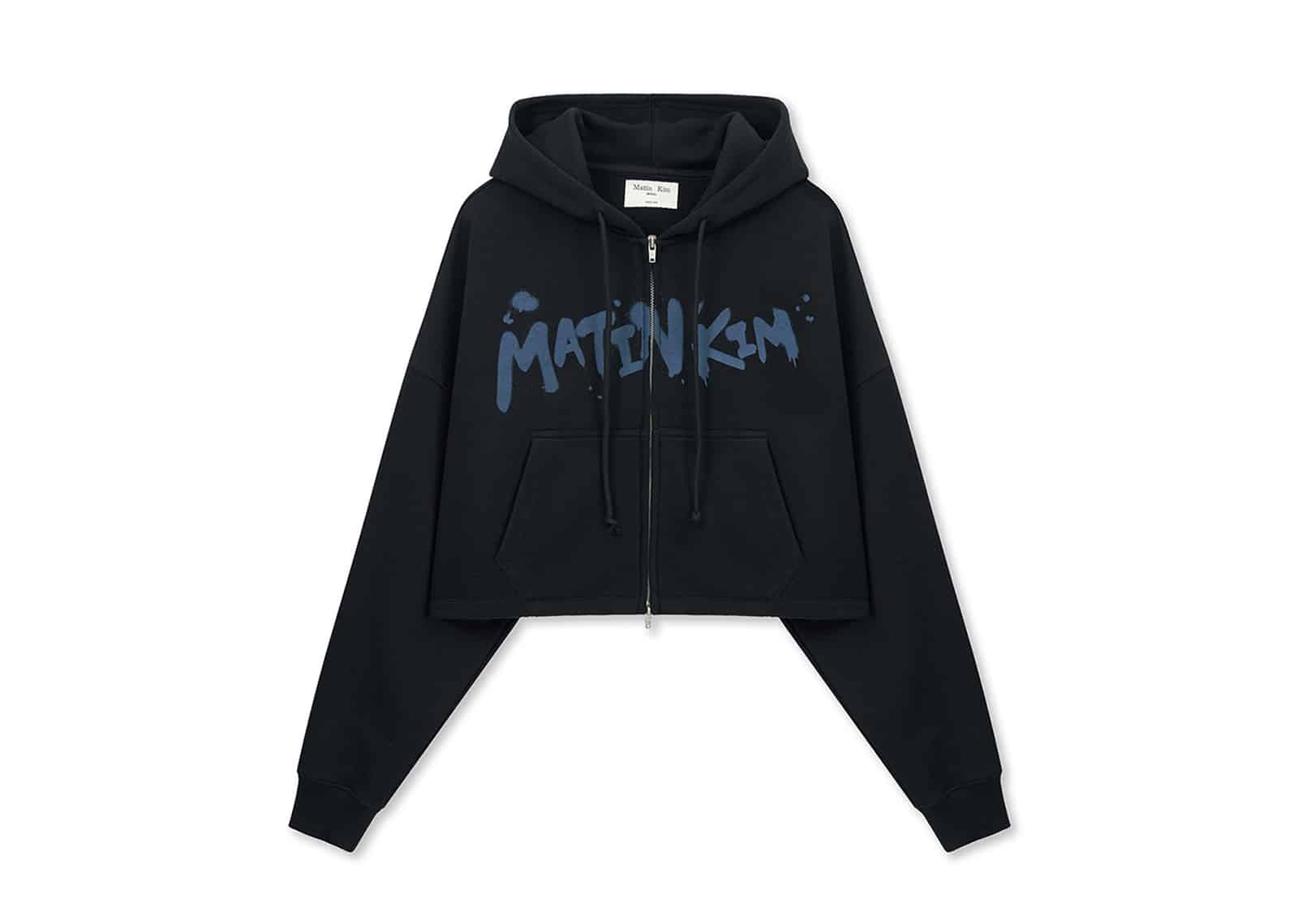 Matin Kim Graffiti Logo Crop Hoody Zip Up Black JP007