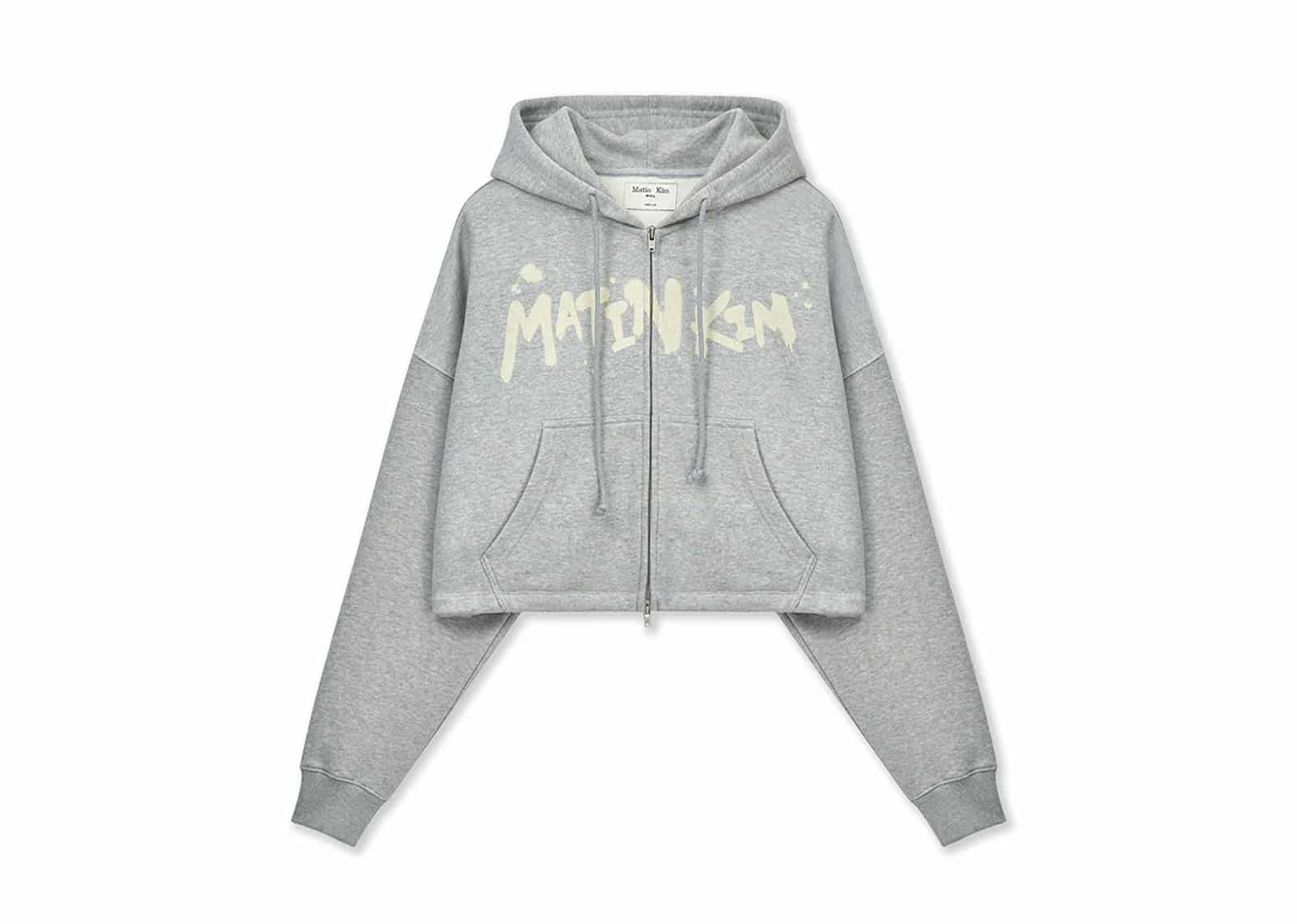Matin Kim Graffiti Logo Crop Hoody Zip Up Grey JP007