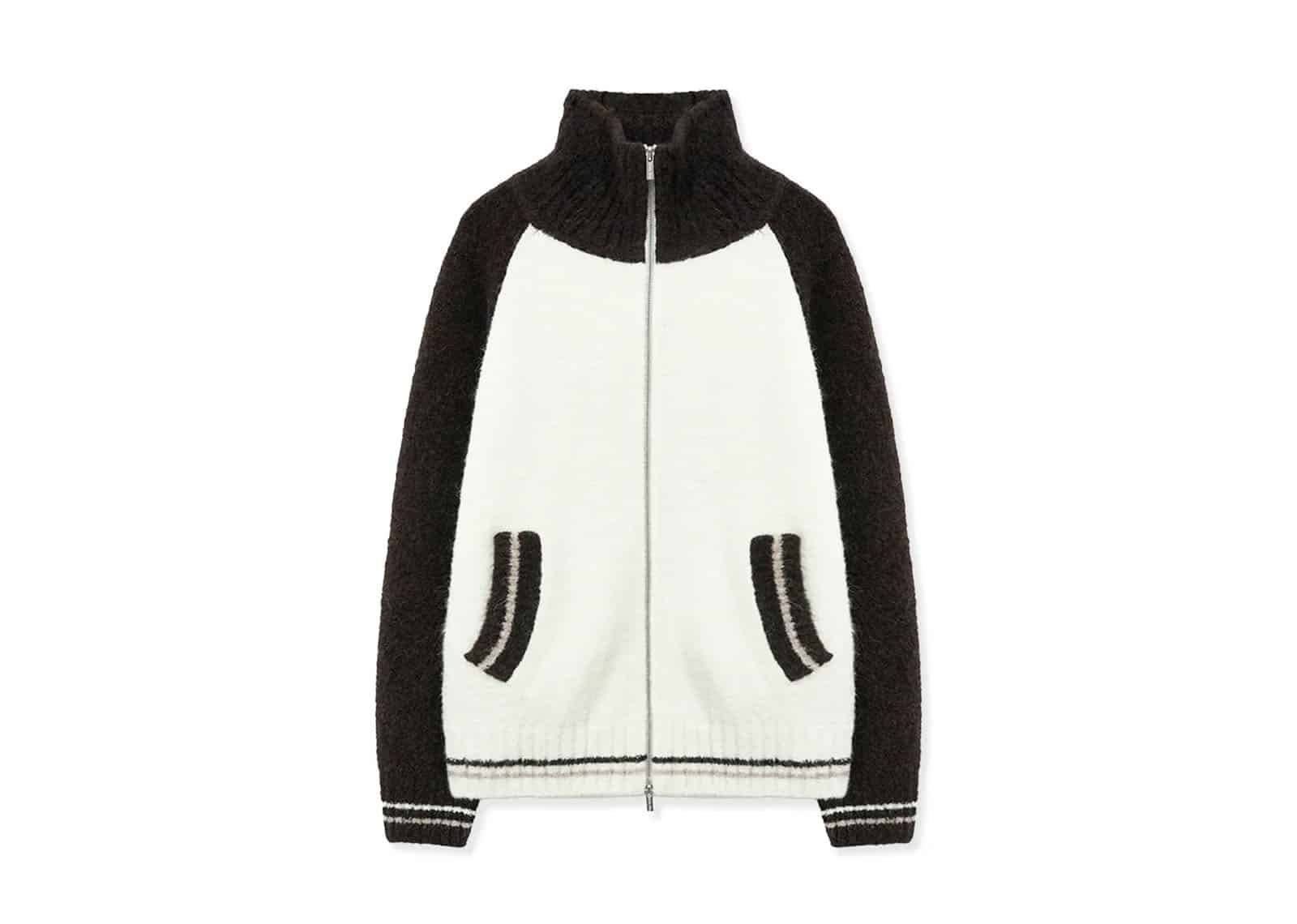 Matin Kim High Neck Raglan Knit Zip Up Dark Brown CD016 (W)
