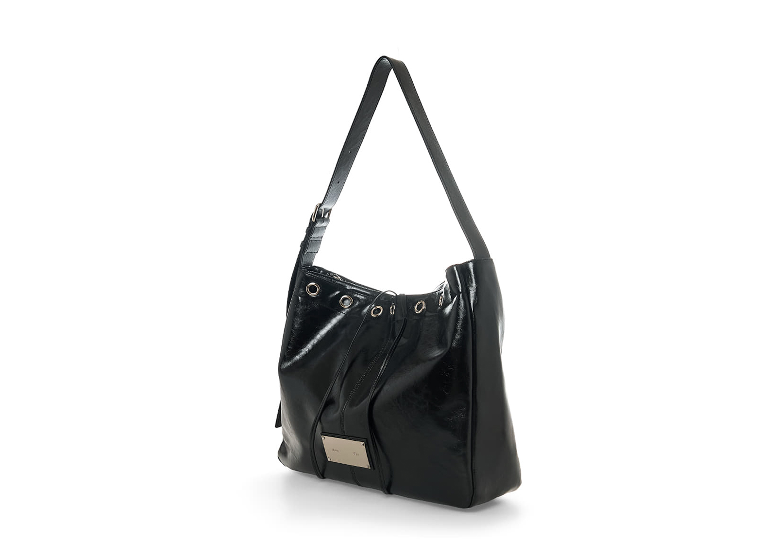Matin Kim Matin Eyelet Point Layered Big Shoulder Bag Black BG030