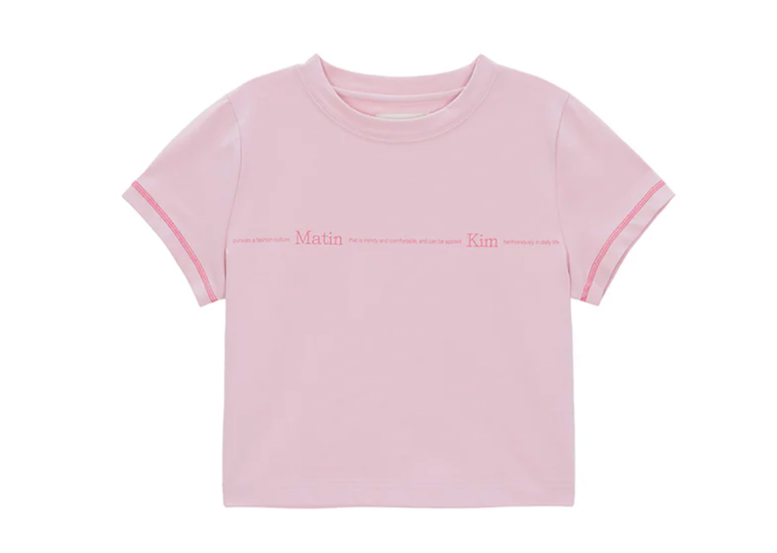 Matin Kim Matin Small Line Logo Stitch Crop Top Pink TS015