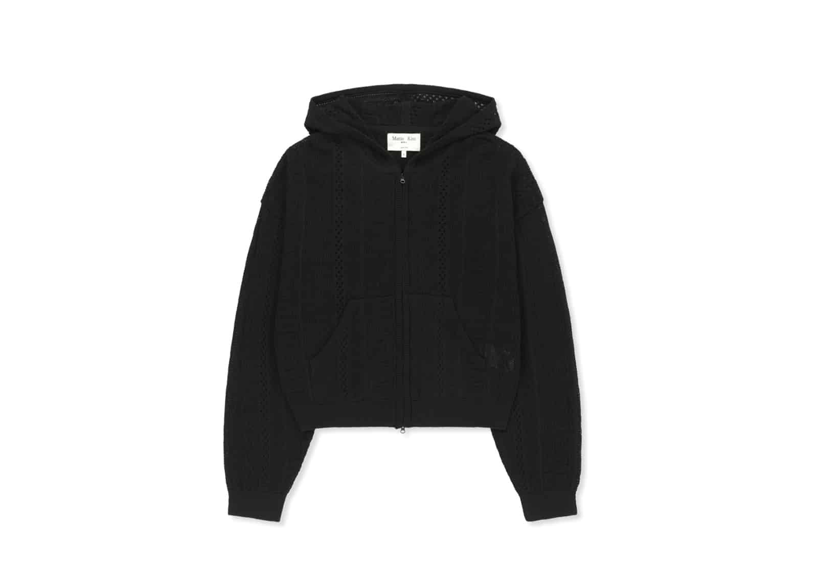 Matin Kim Mesh Logo Knit Hoody Zip Up Black CD005