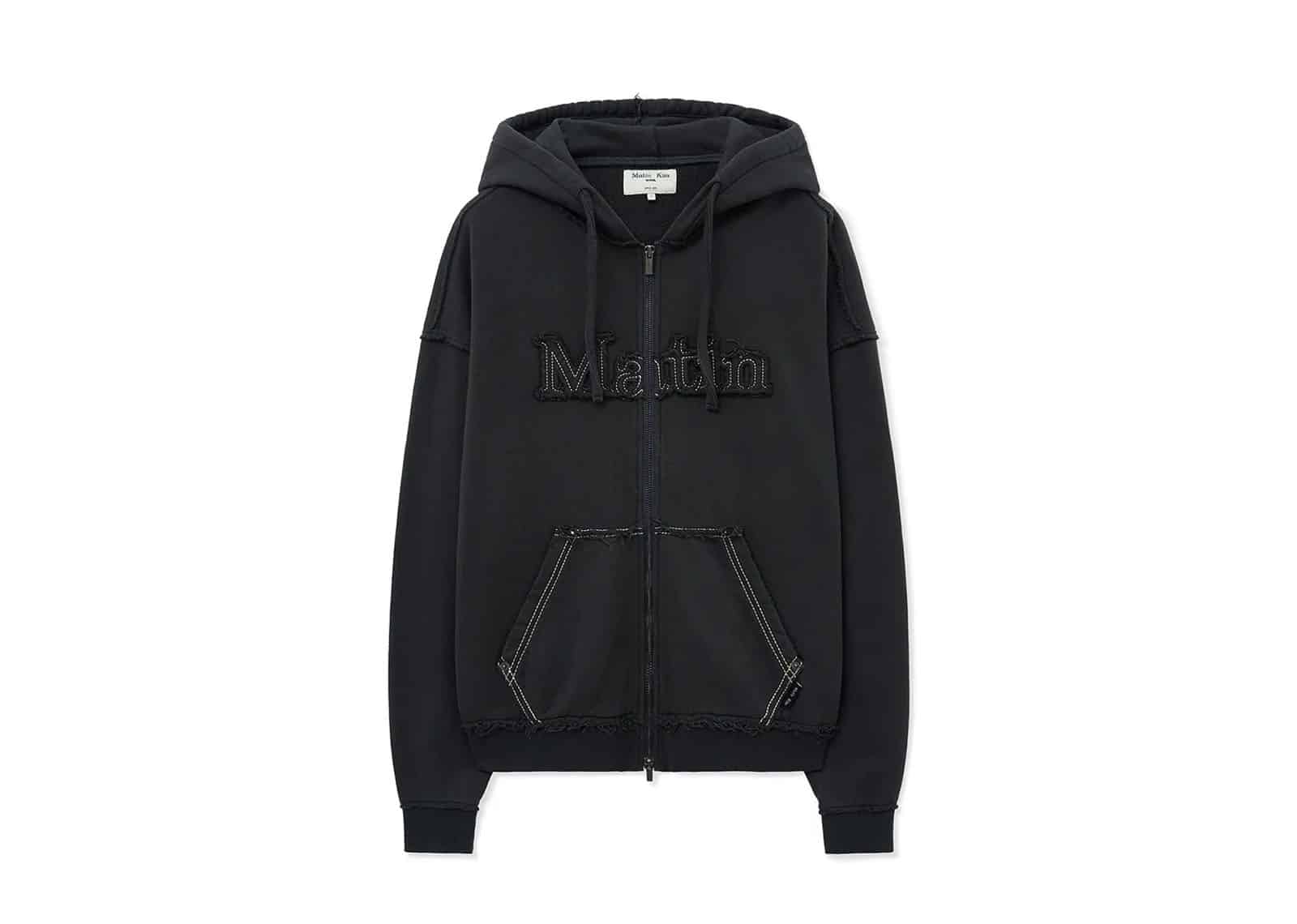Matin Kim Raw Cut Applique Hoody Zip-Up Charcoal JP053