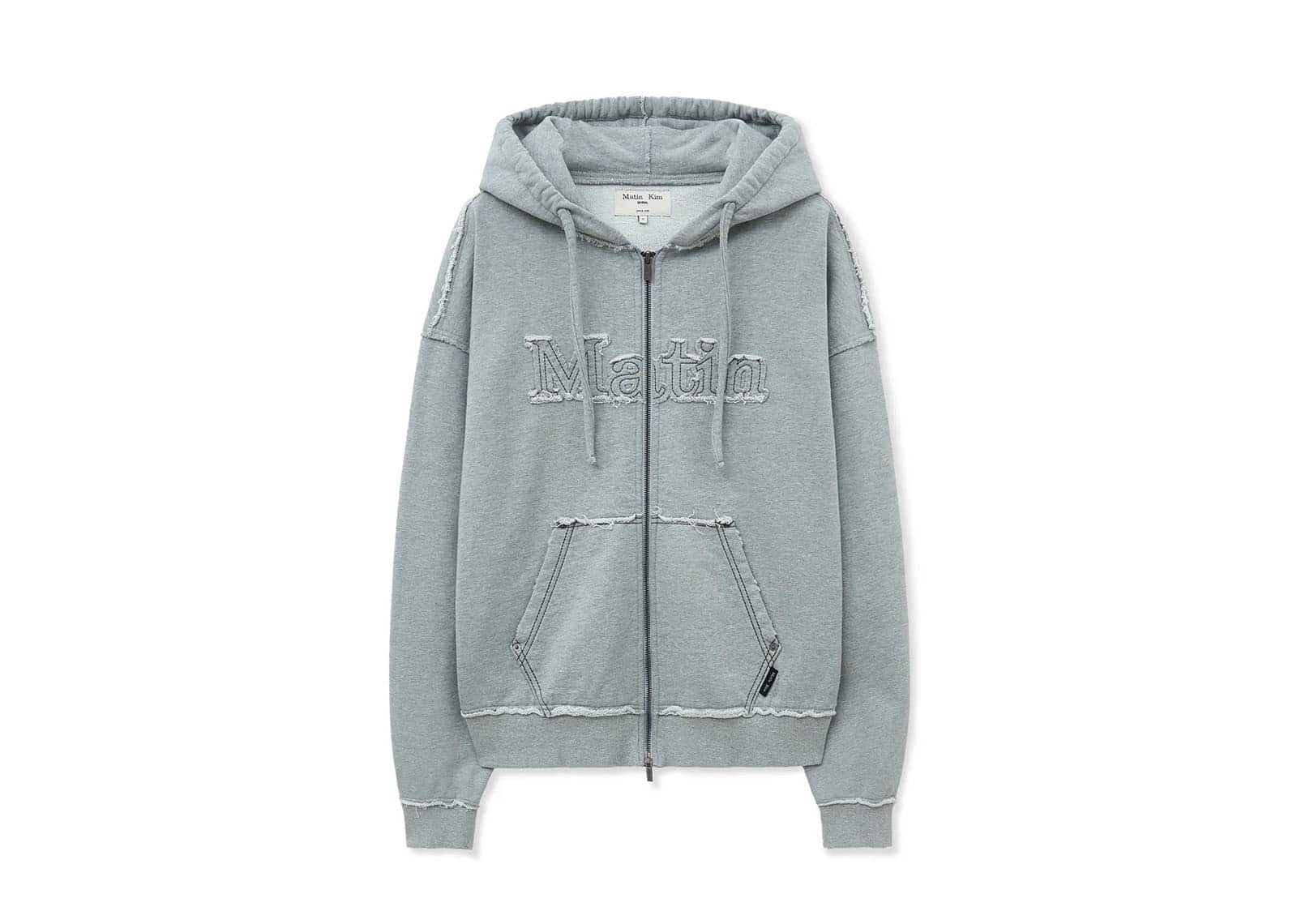 Matin Kim Raw Cut Applique Hoody Zip-Up Grey JP053