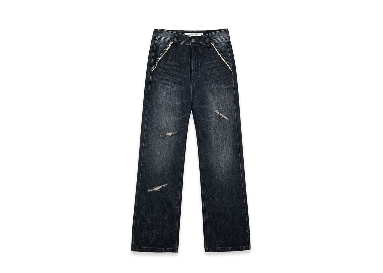 Matin Kim Semi Boots Cut Washed Denim Pants Navy DN028