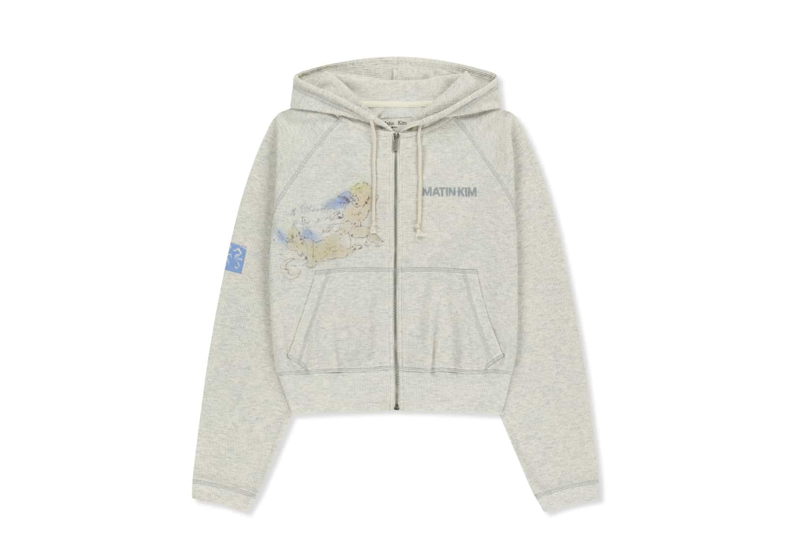 Matin Kim Sketch Graffiti Waffle Hoody Zip Up Light Beige JP012