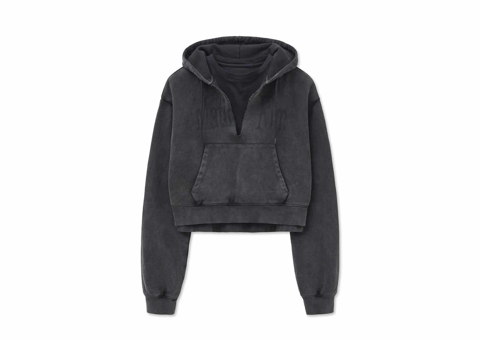 Matin Kim Washed Layered Crop Hoody Charcoal TS083