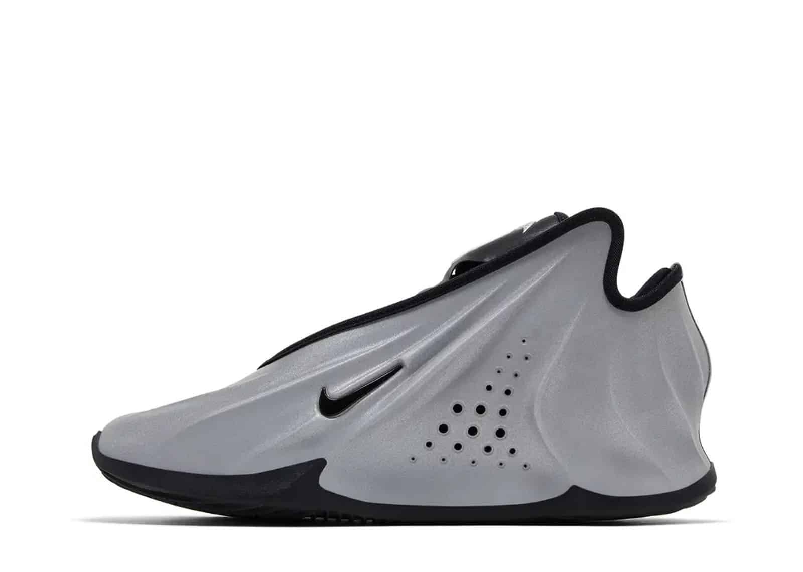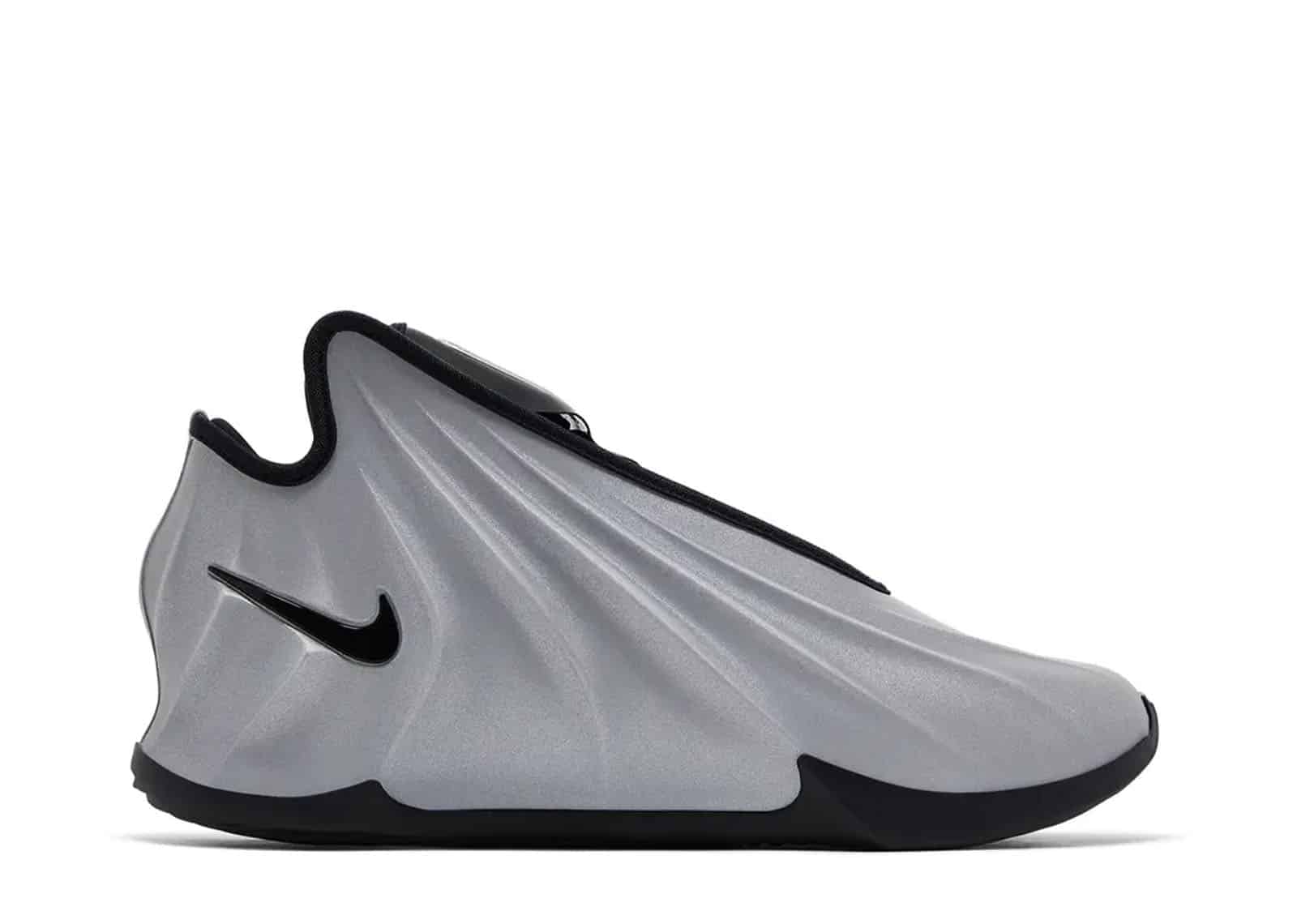 With its molded synthetic upper and 3M reflective finish, the Nike GT Future ‘Metallic Silver’ is a stylish performance basketball shoe. The tongue, collar lining, and the Swoosh on the lateral heel all have striking black accents. A padded heel lock system and an inside bootie for a tight, secure fit. A full-length Zoom Air Strobel and a bouncy Zoom Air unit in the forefoot work with the Cushlon 3.0 midsole to provide lightweight cushioning.