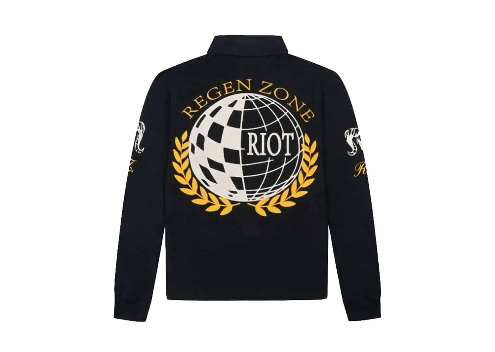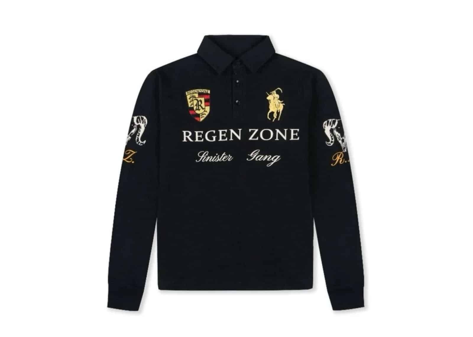 REGEN ZONE SPUR Vintage Racing Gold Foil Polo Long Sleeve Tee Black