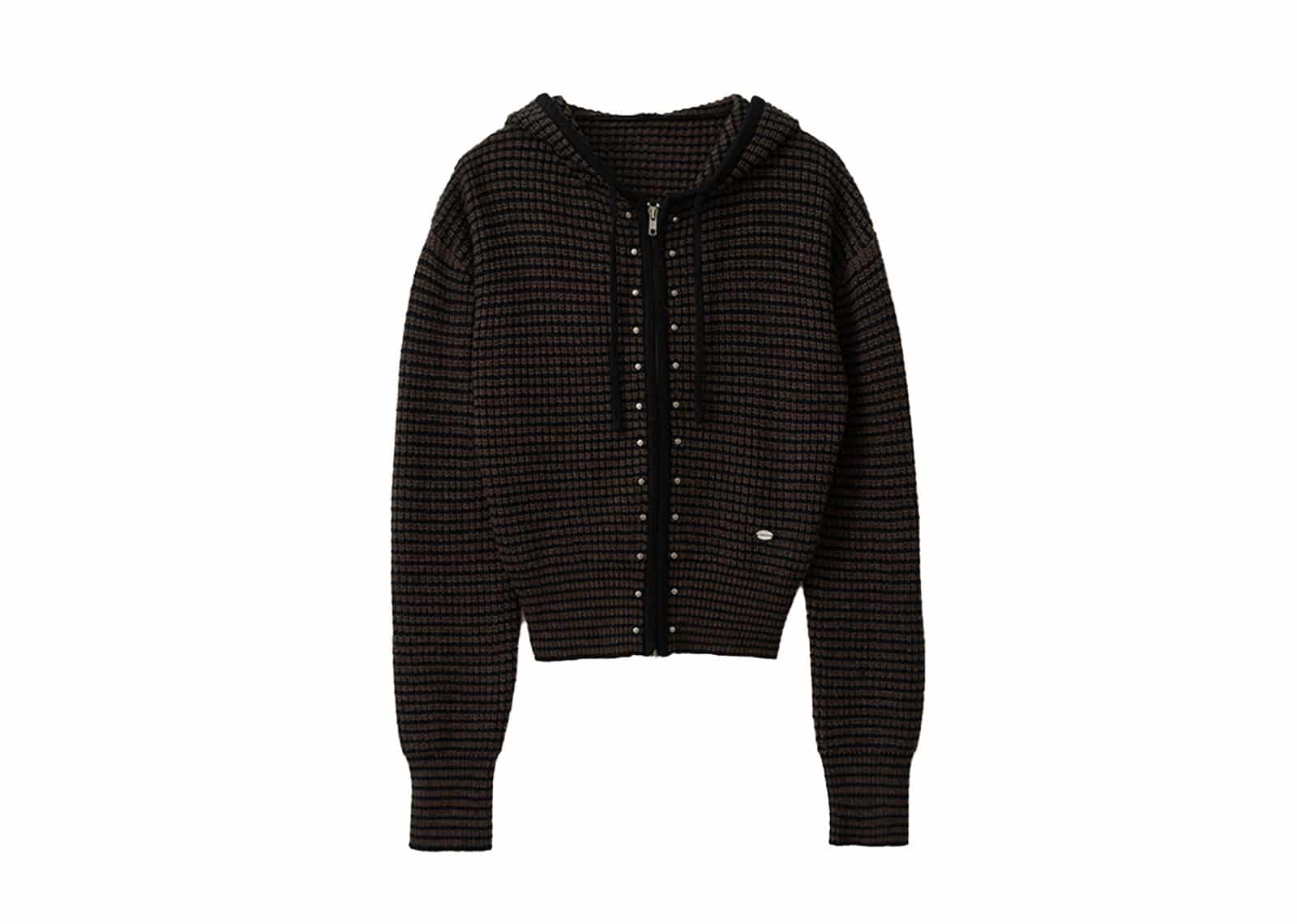 Rolarola Stud Knit Hooded Zip-Up Brown