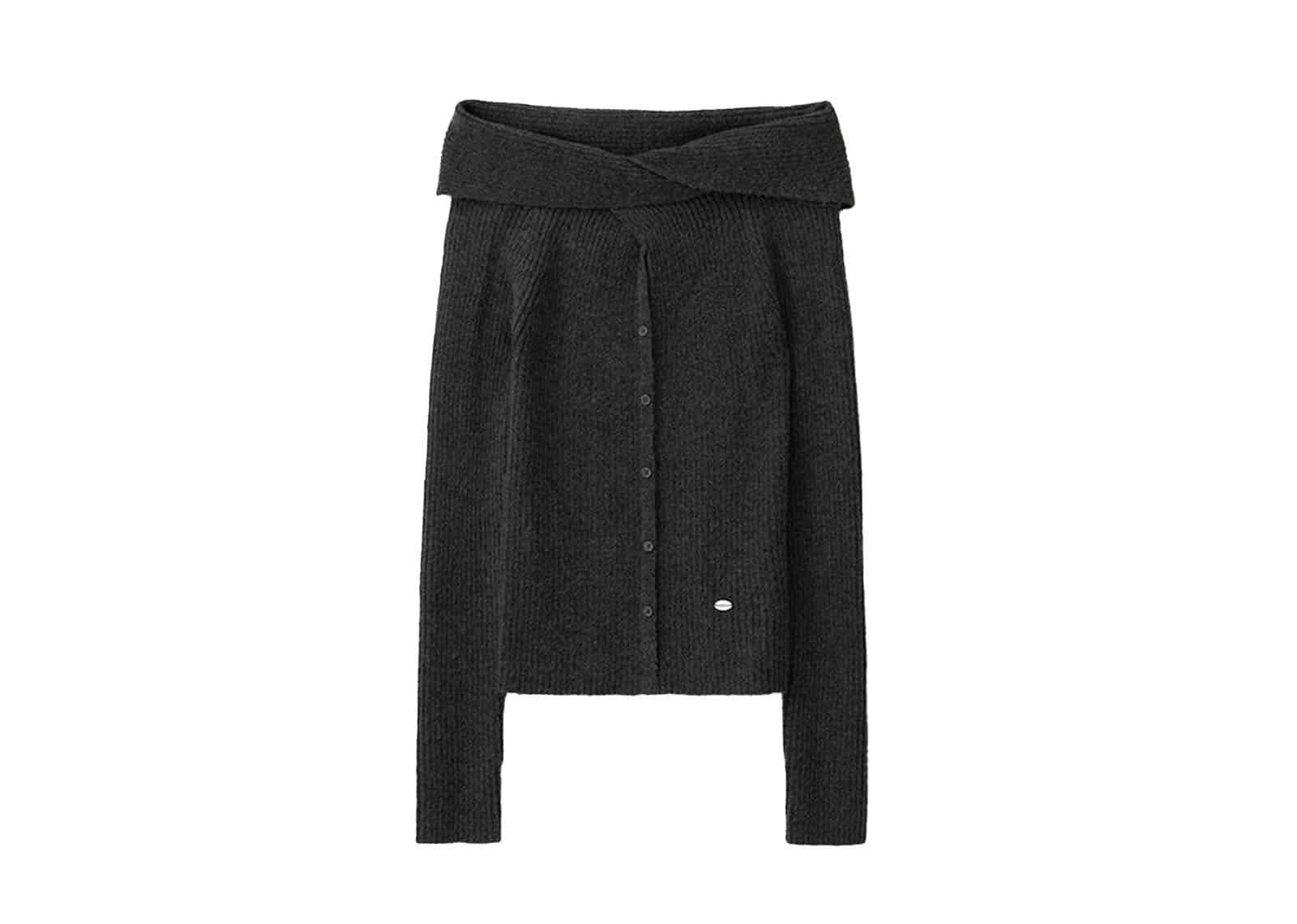 Rolarola Wool Blended Twist Button Off Shoulder Knit Charcoal