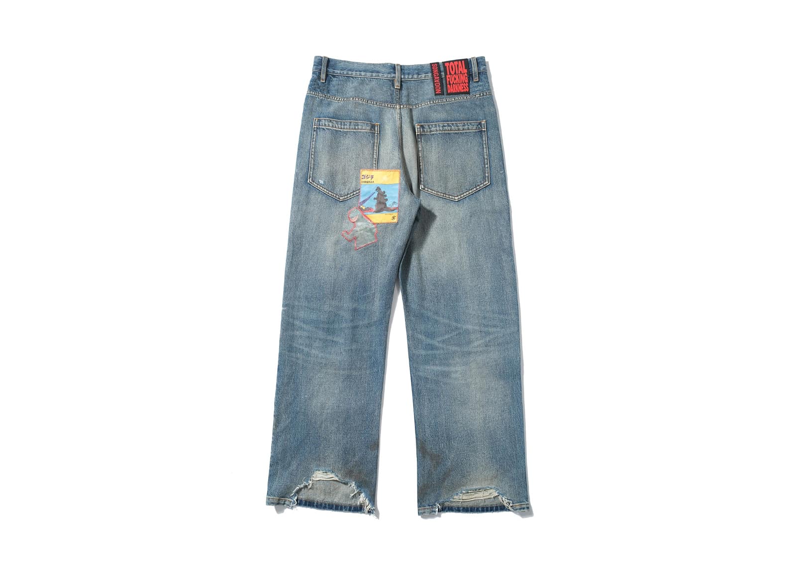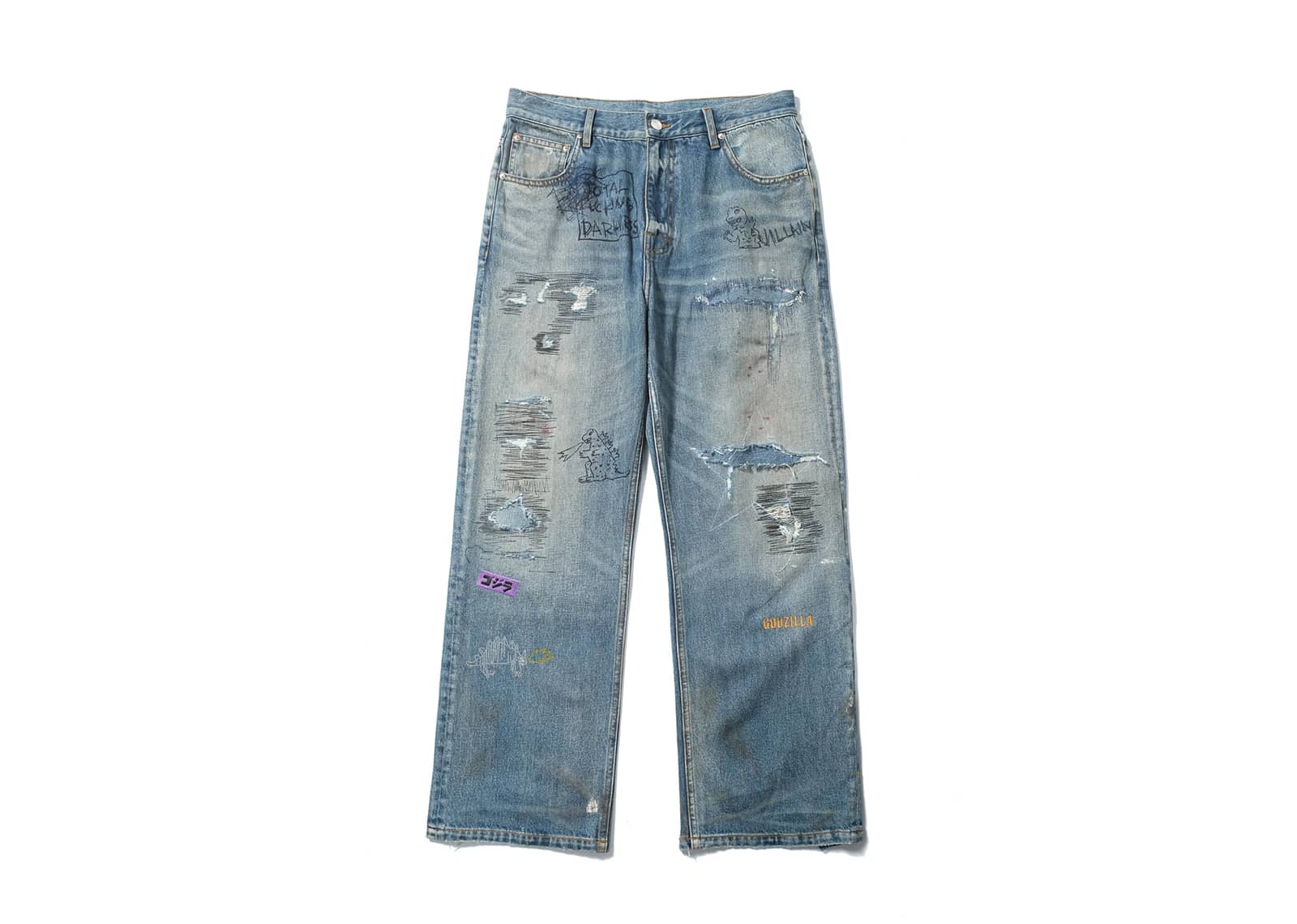 SONGAADON Random Stitch Applique Embroidery Rhinestone Jeans Blue