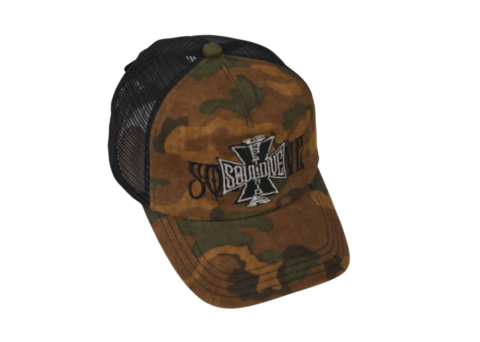 SOULDIVE 24SS Ink Washed Distressed Mesh Baseball Cap Camo