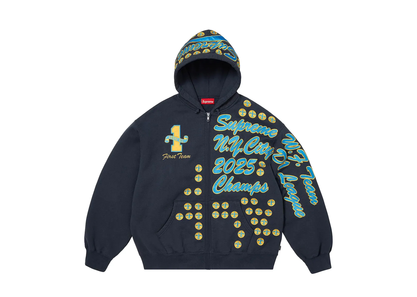 Supreme League Champs Zip Up Hooded Sweatshirt Navy