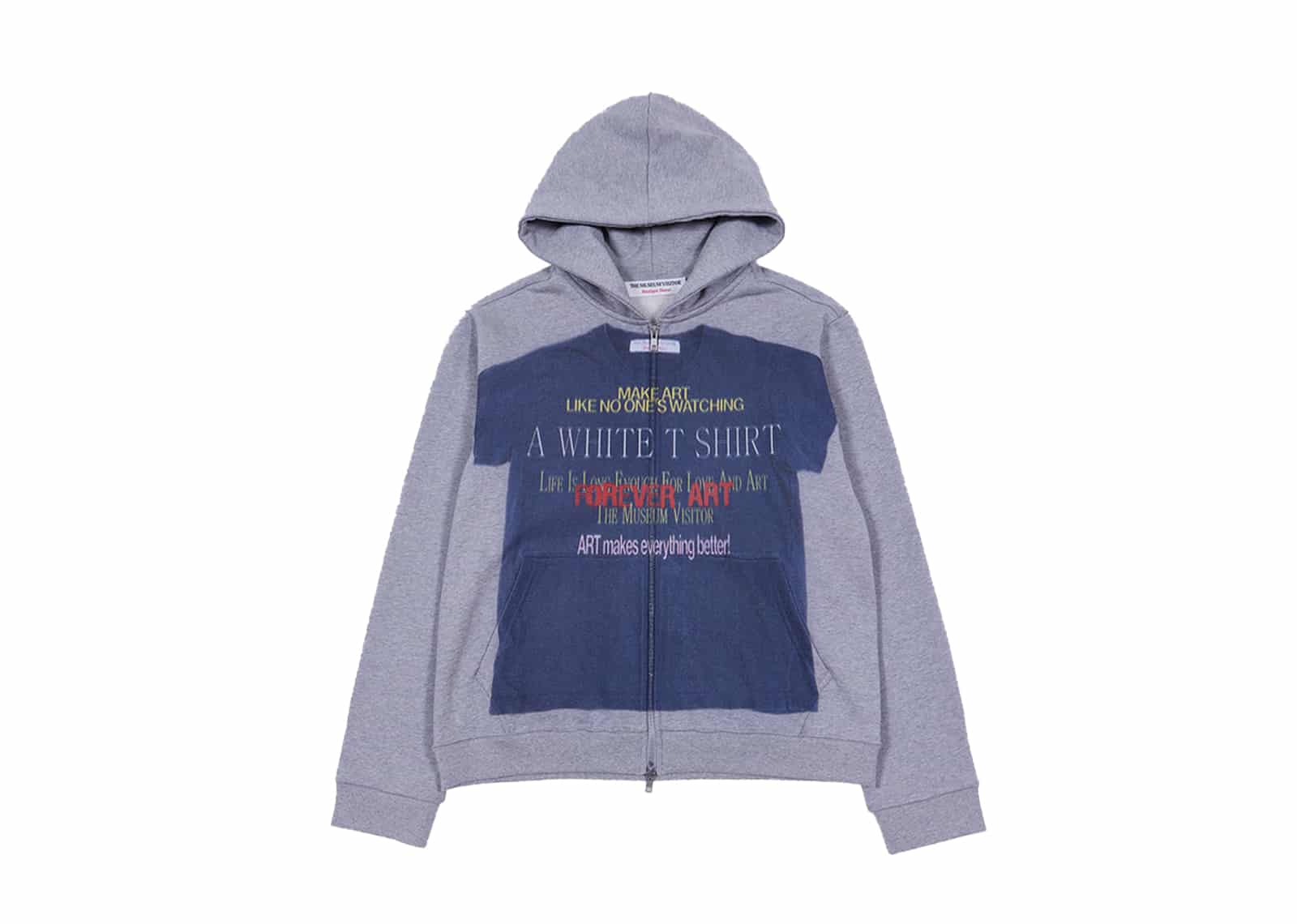 The Museum Visitor Lettering Tee Printed Zip Up Hoodie Grey